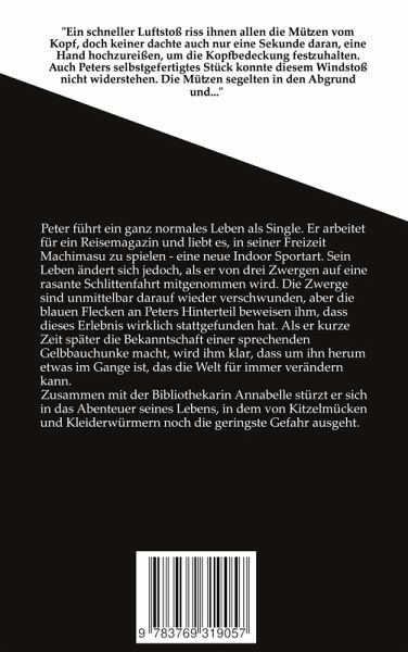 Peter führt ein ganz normales Leben als Single. Er arbeitet für ein Reisemagazin und liebt es, in seiner Freizeit Machimasu zu spielen - eine neuartige Indoor Sportart. Sein Leben ändert sich jedoch, als er von drei Zwergen auf eine rasante Schlittenfahrt mitgenommen wird. Die Zwerge sind unmittelbar darauf wieder verschwunden, aber die blauen Flecken an Peters Hinterteil beweisen ihm, dass dieses Erlebnis wirklich stattgefunden hat. Als er kurze Zeit später die Bekanntschaft einer sprechenden Gelbbauchunke macht, wird ihm klar, dass um ihn herum etwas im Gange ist, dass die Welt für immer verändern kann. Zusammen mit der Bibliothekarin Annabelle stürzt er sich in das Abenteuer seines Lebens, in dem von Kitzelmücken und Kleiderwürmern noch die geringste Gefahr ausgeht.