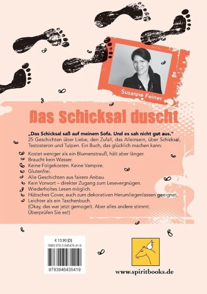 "Das Schicksal saß auf meinem Sofa. Und es sah nicht gut aus."25 Geschichten über Liebe, den Zufall, das Alleinsein, über Schicksal, Testosteron und Tulpen. Ein Buch, das glücklich machen kann:- Kostet weniger als ein Blumenstrauß, hält aber länger.- Braucht kein Wasser.- Keine Folgekosten. Keine Vampire.- Glutenfrei.- Alle Geschichten aus fairem Anbau.- Kein Vorwort - direkter Zugang zum Lesevergnügen.- Wiederholtes Lesen möglich.- Hübsches Cover, auch zum dekorativen Herumliegenlassen geeignet.- Leichter als ein Taschenbuch. (Okay, das war jetzt gemogelt. Aber alles andere stimmt. Überprüfen Sie es!)