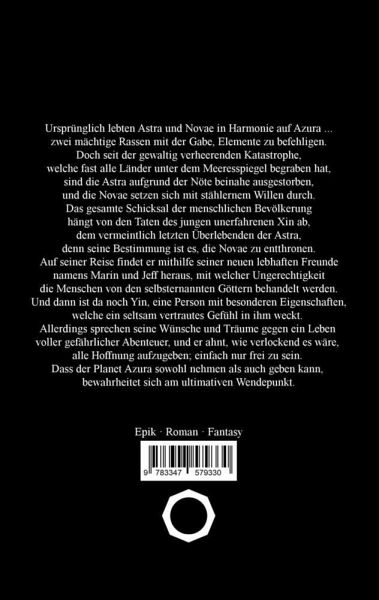 Ursprünglich lebten die legendären Astra und Novae in Harmonie auf Azura - zwei mächtige Rassen mit der Gabe, die Elemente dieser Welt zu befehligen. Doch seit der gewaltig verheerenden Katastrophe, welche fast alle Länder unter dem Meeresspiegel begraben hat, sind die Astra aufgrund der Nöte beinahe ausgestorben, und die Novae setzen sich mit stählernem Willen durch. Das gesamte Schicksal der menschlichen Bevölkerung hängt von den Taten des jungen unerfahrenen Xin ab, dem vermeintlich letzten Überlebenden der Astra, denn seine Bestimmung ist es, die Novae zu entthronen. Auf seiner Reise findet er mithilfe seiner neuen lebhaften Freunde namens Marin und Jeff heraus, mit welcher Ungerechtigkeit die Menschen von den selbsternannten Göttern behandelt werden. Und dann ist da noch Yin, eine Person mit besonderen Eigenschaften, welche ein seltsam vertrautes Gefühl in ihm weckt. Allerdings sprechen seine Wünsche und Träume gegen ein Leben voller gefährlicher Abenteuer, und er ahnt, wie verlockend es wäre, alle Hoffnung aufzugeben; einfach nur frei zu sein. Dass der Planet Azura sowohl nehmen als auch geben kann, bewahrheitet sich am ultimativen Wendepunkt.