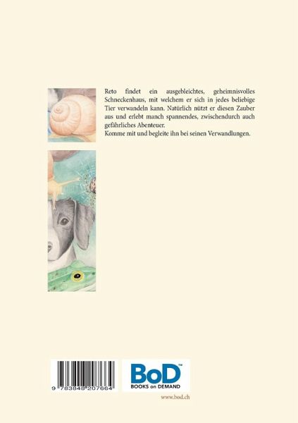 Reto findet ein ausgebleichtes, geheimnisvolles Schneckenhaus, mit welchem er sich in jedes beliebige Tier verwandeln kann. Natürlich nützt er diesen Zauber aus und erlebt manch spannendes, zwischendurch auch gefährliches Abenteuer.Komme mit und begleite ihn bei seinen Verwandlungen.