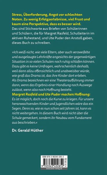 Stress, Überforderung, Angst vor schlechten Noten. Zu wenig Erfolgserlebnisse, viel Frust und kaum eine Perspektive, dass es besser wird. Das sind Stichworte aus Briefen von Schülerinnen und Schülern, die für Margret Rasfeld und Ute Puder den Anstoß gaben, dieses Buch zu schreiben.