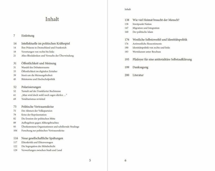 Warum wir dem Furor des Fundamentalismus, der von Rechten, Linken und Islamisten gleichermaßen bedient wird, entgegen treten müssenNeue gesellschaftliche Spaltungen: Elitenkritik und der Verlust der MittelschichtDie politische Vertrauenskrise: der Absturz der Volksparteien und seine AuswirkungenVon Lügenpresse bis Cyberaktivismus: Öffentlichkeit und freie Meinungsäußerung im digitalen ZeitalterEin kluges Plädoyer für antitotalitäre Selbstaufklärung und für eine starke Demokratie