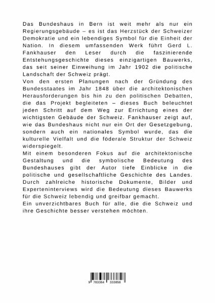 Das Bundeshaus in Bern ist weit mehr als nur ein Regierungsgebäude - es ist das Herzstück der Schweizer Demokratie und ein lebendiges Symbol für die Einheit der Nation. In diesem umfassenden Werk führt Gerd L. Fankhauser den Leser durch die faszinierende Entstehungsgeschichte dieses einzigartigen Bauwerks, das seit seiner Einweihung im Jahr 1902 die politische Landschaft der Schweiz prägt.Von den ersten Planungen nach der Gründung des Bundesstaates im Jahr 1848 über die architektonischen Herausforderungen bis hin zu den politischen Debatten, die das Projekt begleiteten - dieses Buch beleuchtet jeden Schritt auf dem Weg zur Errichtung eines der wichtigsten Gebäude der Schweiz. Fankhauser zeigt auf, wie das Bundeshaus nicht nur ein Ort der Gesetzgebung, sondern auch ein nationales Symbol wurde, das die kulturelle Vielfalt und die föderale Struktur der Schweiz widerspiegelt.Mit einem besonderen Fokus auf die architektonische Gestaltung und die symbolische Bedeutung des Bundeshauses gibt der Autor tiefe Einblicke in die politische und gesellschaftliche Geschichte des Landes. Durch zahlreiche historische Dokumente, Bilder und Experteninterviews wird die Bedeutung dieses Bauwerks für die Schweiz lebendig und greifbar gemacht.Ein unverzichtbares Buch für alle, die die Schweiz und ihre Geschichte besser verstehen möchten.