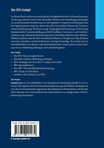 In diesem Buch werden die wesentlichen Erfolgsfaktoren der Suchmaschinenoptimierung erläutert und neben aktuellen Trends auch Handlungsanleitungen zur professionellen Einführung von SEO geliefert. Gespickt mit Beispielen aus der Agenturpraxis zeigt der Autor die acht essenziellen Phasen der Suchmaschinenoptimierung: Positionierung, Zielgruppenbestimmung, Zielsetzung, Kanalauswahl, Contenterstellung und EAT-Aufbau, Conversion- und Usability-Optimierung, technische Optimierung und Controlling. Falls Sie einen Website-Relaunch planen oder für Ihre bestehende Website in Google eine Top-Position erreichen möchten, ist dieses Buch die richtige Grundlage. Es richtet sich an Geschäftsführer von kleinen und mittelständischen Unternehmen sowie Start-ups und an Marketing-Manager sowie Marketingleiter.