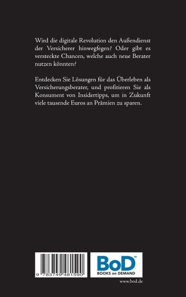 Wird die digitale Revolution den Außendienst der Versicherer hinwegfegen? Oder gibt es versteckte Chancen, welche auch neue Berater nutzen könnten?Entdecken Sie Lösungen für das Überleben als Versicherungs-berater, und profitieren Sie als Konsument von Insidertipps, um in Zukunft viele tausende Euros an Prämien zu sparen.