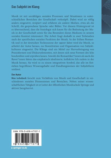 Gesellschaft verknüpft. Dabei wird sie völlig anders eingesetzt, rezipiert und erfahren als andere Medien, etwa als die Schrift, die gesprochene Sprache oder Bilder. Vor diesem Hintergrund ist es überraschend, dass die Soziologie sich kaum für die Bedeutung der Musik in der Gesellschaft sowie für das Besondere dieses Mediums in seinem sozialen Kontext interessiert. Die Arbeit fragt deshalb in zwei Teilstudien nach der spezifischen sozialen Funktion der Musik. In der frühen Romantik und in der deutschen Technoszene der 1990er Jahre wird die Musik, so arbeitet der Autor heraus, zur Konstitution und Organisation von Subjektkulturen eingesetzt. Die Klänge sind ein Mittel zur Hervorbringung von Praxisformen und Diskurselementen, mit denen sich neue Formen des Ichs beschreiben und erproben lassen. Sowohl die Romantiker_innen als auch die Raver_innen hören das emphatisch idealisierte, kollektive Ich zudem in der Musik heraus. Sie wird so zu einem integrativen Symbol, das alle im Entstehen begriffenen Wissensgehalte und Handlungsweisen der Subjektform umfasst.