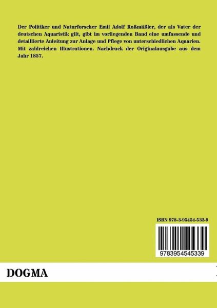 Der Politiker und Naturforscher Emil Adolf Roßmäßler, der als Vater der deutschen Aquaristik gilt, gibt im vorliegenden Band eine umfassende und detaillierte Anleitung zur Anlage und Pflege von unterschiedlichen Aquarien. Mit zahlreichen Illustrationen. Nachdruck der Originalausgabe aus dem Jahr 1857.