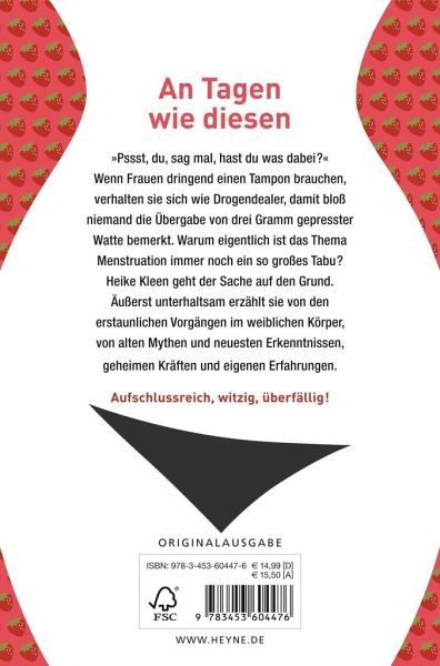"Pssst, du, sag mal, hast du was dabei?" Wenn Frauen dringend einen Tampon brauchen, benehmen sie sich wie Drogendealer, damit bloß niemand die Übergabe von drei Gramm gepresster Watte bemerkt. Das Thema Menstruation ist immer noch ein großes Tabu. Warum eigentlich? Heike Kleen geht der Sache auf den Grund. Äußerst unterhaltsam erzählt sie von den erstaunlichen Vorgängen im weiblichen Körper, von alten Mythen und neuesten Erkenntnissen, geheimen Kräften und eigenen Erfahrungen.