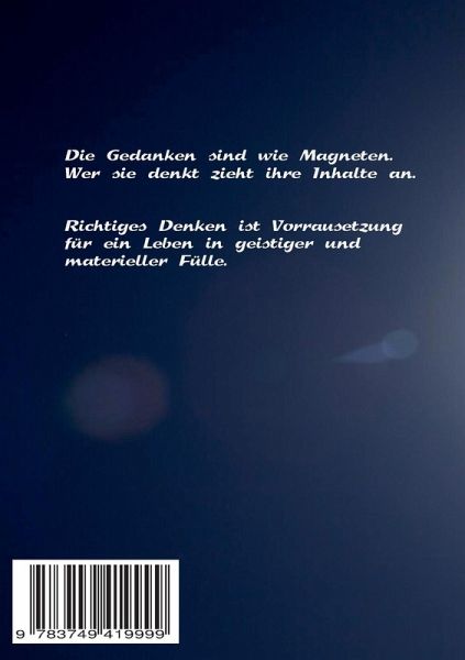 Viele kennen die Gesetzmäßigkeit der selbsterfüllenden Prophezeiung. Wenn jemand davon ausgeht in einer Prüfung zu versagen, dann wird die Prüfung zumindest nicht gut verlaufen. Diese Gesetzmäßigkeit trifft auf viel mehr Dinge unserer Welt zu. Der Geist herrscht über die Materie! Spätestens seit den Erkenntnissen der Quantenmechanik wissen wir, dass da etwas dran ist. Und die Wirkung des Denkens geht weiter über unsere Grenzen hinaus. Alle Gedanken sind Informationen. Und diese gestalten unsere Welt. Für ein erfolgreiches und erfülltes Leben ist es daher wichtig die richtigen Gedanken zu streuen. Und dabei wird dieses Tagebuch helfen. Erlernen Sie die Selbstkontrolle um Ihren Weg in der Zukunft zu ebnen. Machen Sie sich das Leben leichter!