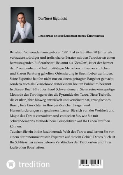 In meinem Buch "Das Tarot lügt nicht" nehme ich Sie mit auf eine spannende Entdeckungsreise in die Welt des Tarots, so wie ich sie über die Jahre selbst erlebt habe. Mit meinem speziell entwickelten System, das ich "Die Pyramide" nenne, möchte ich Ihnen eine Methode an die Hand geben, die es Ihnen ermöglicht, die Karten auf eine intuitive und tiefgehende Weise zu verstehen und zu deuten.Ich führe Sie Schritt für Schritt durch die Grundlagen des Tarots und zeige Ihnen, wie Sie Ihre eigene Deutungskompetenz aufbauen können. Doch mein Buch ist mehr als nur ein Lehrbuch. Ich teile mit Ihnen auch meine persönlichen Erfahrungen und Einblicke aus meiner Arbeit mit den Karten, um Ihnen zu zeigen, wie kraftvoll und erhellend das Tarot sein kann."Das Tarot lügt nicht" ist für alle gedacht, die nicht nur die technischen Aspekte des Kartenlegens erlernen möchten, sondern auch die tieferen, spirituellen Einsichten, die das Tarot bietet, in ihr Leben integrieren wollen. Ich lade Sie ein, Ihre eigene Verbindung zu den Karten zu entdecken und das Tarot als Werkzeug für Selbsterkenntnis und Lebenshilfe zu nutzen.