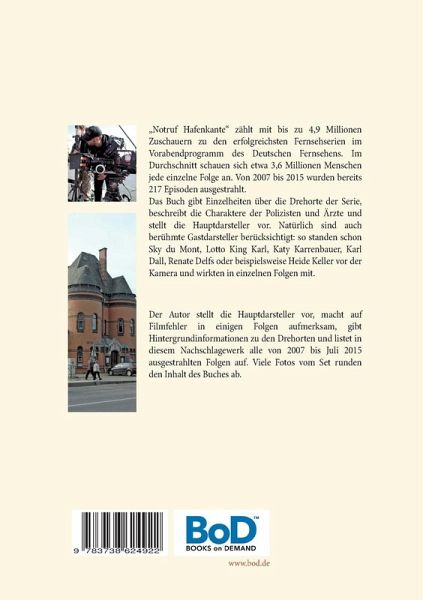 "Notruf Hafenkante" zählt mit bis zu 4,9 Millionen Zuschauern zu den erfolgreichsten Fernsehserien im Vorabendprogramm des Deutschen Fernsehens. Im Durchschnitt schauen sich etwa 3,6 Millionen Menschen jede einzelne Folge an. Von 2007 bis 2015 wurden bereits 217 Episoden ausgestrahlt. Dabei handelt es sich um eine Mischung aus Polizei-, Arzt- und Familienserie. Im Vordergrund stehen Geschichten aus dem Alltag der Hamburger Polizisten des Kommissariats 21 in der Speicherstadt, sowie den Ärzten aus dem Elbkrankenhaus. Kurzum: "Notruf Hafenkante" ist eine Serie über den Berufsalltag Hamburger Streifenpolizisten und Notärzten, eingebettet mit netten Geschichten Hamburger Bürger. Das Polizeikommissariat 21 liegt direkt an der Hafenkante. Dabei handelt es sich um eine Uferlinie, die an Neumühlen beginnt, den St. Pauli Landungsbrücken vorbeiführt und bis zur Speicherstadt und der neuen Hafen-City reicht. Das Buch gibt Einzelheiten über die Drehorte der Serie, beschreibt die Charaktere der Polizisten und Ärzte und stellt die Hauptdarsteller vor. Natürlich sind auch berühmte Gastdarsteller berücksichtigt: so standen schon Sky du Mont, Lotto King Karl, Katy Karrenbauer, Karl Dall, Renate Delfs oder beispielsweise Heide Keller vor der Kamera und wirkten in einzelnen Folgen mit. Der Autor stellt die Hauptdarsteller vor, macht auf Filmfehler aufmerksam, gibt Hintergrundinformationen über die Drehorte und listet in diesem Nachschlagewerk alle bisher ausgestrahlten Folgen auf. Viele Fotos vom Set runden den Inhalt des Buches ab.