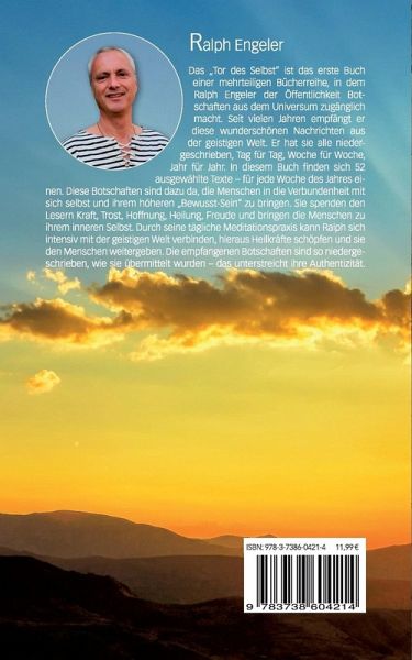 Das Tor des Selbst ist das erste Buch einer mehrteiligen Bücherreihe, die Ralph Engeler der Öffentlichkeit zugänglich macht. Seit vielen Jahren empfängt er wunderschöne Botschaften aus der geistigen Welt und hat sie niedergeschrieben. Durch seine tägliche Meditationspraxis kann er sich intensiv mit der geistigen Welt verbinden, hieraus Heilkräfte schöpfen und sie den Menschen weitergeben. Diese 52 Botschaften sind dazu da, die Menschen in die Verbundenheit mit sich Selbst und ihrem höheren Bewusstsein zu bringen. Die empfangenen Botschaften sind so niedergeschrieben, wie sie übermittelt wurden. Sie spenden den Lesern Kraft, Trost, Hoffnung, Heilung und Freude und bringen die Menschen zu ihrem inneren Selbst.