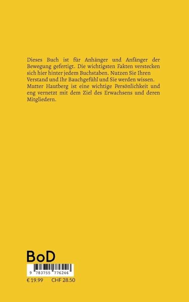 Dieses Buch ist für Anhänger und Anfänger der Bewegung gefertigt. Die wichtigsten Fakten verstecken sich hier hinter jedem Buchstaben. Nutzen Sie Ihren Verstand und Ihr Bauchgefühl und Sie werden wissen.Mutter Hautberg ist eine wichtige Persönlichkeit und eng vernetzt mit dem Ziel des Erwachsens und deren Mitgliedern.