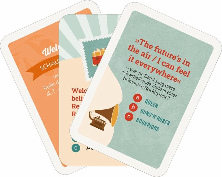 Das kurzweilige Kartenspiel ist eine Reise in die Vergangenheit - vom Skateboarden und den Beatles über das Farbfernsehen und die Mondlandung bis hin zu Jimi Hendrix, dem Rubikwürfel und Schimanski.