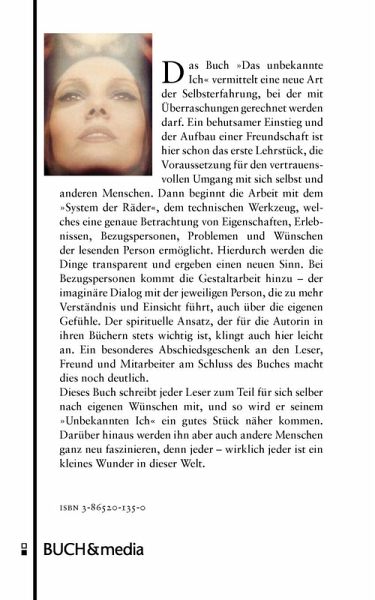 Das Buch"Das unbekannte Ich"vermittelt eine neue Art der Selbsterfahrung, bei der mit Überraschungen gerechnet werden darf. Ein behutsamer Einstieg und der Aufbau einer Freundschaft ist hier schon das erste Lehrstück, die Voraussetzung für den vertrauensvollen Umgang mit sich selbst und anderen Menschen. Dann beginnt die Arbeit mit dem"System der Räder", dem technischen Werkzeug, welches eine genaue Betrachtung von Eigenschaften, Erlebnissen, Bezugspersonen, Problemen und Wünschen der lesenden Person ermöglicht. Hierdurch werden die Dinge transparent und ergeben einen neuen Sinn. Bei Bezugspersonen kommt die Gestaltarbeit hinzu - der imaginäre Dialog mit der jeweiligen Person, die zu mehr Verständnis und Einsicht führt, auch über die eigenen Gefühle. Der spirituelle Ansatz, der für die Autorin in ihren Büchern stets wichtig ist, klingt auch hier leicht an. Ein besonderes Abschiedsgeschenk an den Leser, Freund und Mitarbeiter am Schluss des Buches macht dies noch deutlich.