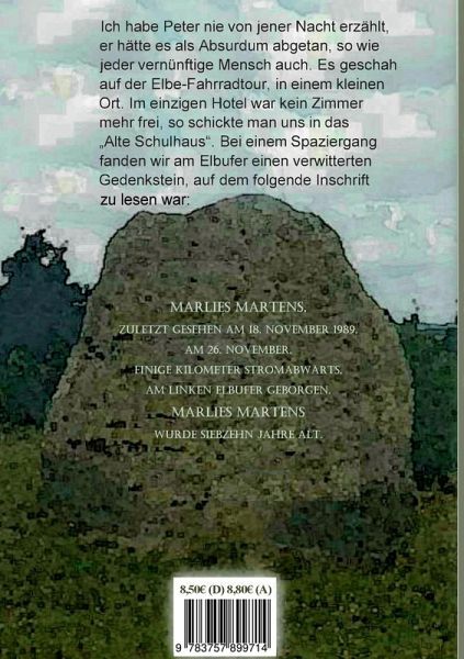 Angelika hat ihrem Mann nie von jener Nacht erzählt, er hätte es als Absurdum abgetan. Es geschah auf der Elbefahrradtour, in einem unscheinbaren, kleinen Ort. Im einzigen Hotel war kein Zimmer mehr frei, so schickte man sie in das Alte Schulhaus. Bei einem Abendsparziergang fanden sie am Elbufer einen verwitterten Gedenkstein, auf dem folgende Inschrift zu lesen war: MARLIES MARTENS, zuletzt gesehen am 18. November 1998, am 26. November, einige Kilometer stromabwärts, am linken Elbufer geborgen. MARLIES MARTENS wurde siebzehn Jahre alt.