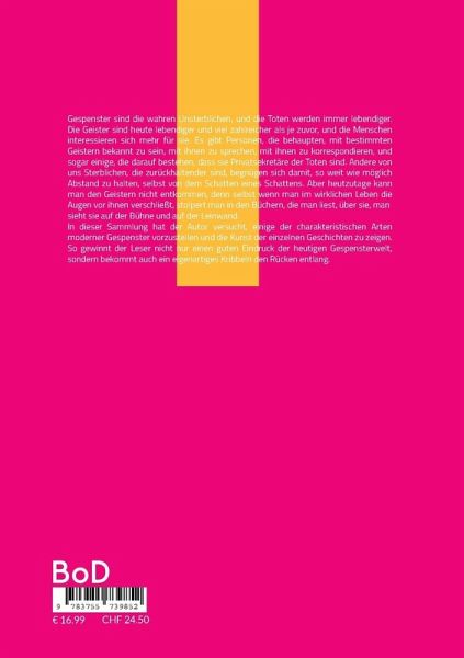 Gespenster sind die wahren Unsterblichen, und die Toten werden immer lebendiger. Die Geister sind heute lebendiger und viel zahlreicher als je zuvor, und die Menschen interessieren sich mehr für sie. Es gibt Personen, die behaupten, mit bestimmten Geistern bekannt zu sein, mit ihnen zu sprechen, mit ihnen zu korrespondieren, und sogar einige, die darauf bestehen, dass sie Privatsekretäre der Toten sind. Andere von uns Sterblichen, die zurückhaltender sind, begnügen sich damit, so weit wie möglich Abstand zu halten, selbst von dem Schatten eines Schattens. Aber heutzutage kann man den Geistern nicht entkommen, denn selbst wenn man im wirklichen Leben die Augen vor ihnen verschließt, stolpert man in den Büchern, die man liest, über sie, man sieht sie auf der Bühne und auf der Leinwand.In dieser Sammlung hat der Autor versucht, einige der charakteristischen Arten moderner Gespenster vorzustellen und die Kunst der einzelnen Geschichten zu zeigen. So gewinnt der Leser nicht nur einen guten Eindruck der heutigen Gespensterwelt, sondern bekommt auch ein eigenartiges Kribbeln den Rücken entlang.