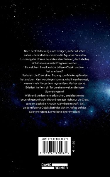 Die Fortsetzung des spannenden Weltraum Thrillers stellt die Crew der Aquarius vor neue Herausforderungen, eine Bedrohung des gesamten Sonnensystems und vielleicht noch viel mehr.Nach der Entdeckung eines riesigen, außerirdischen Kubus, dem Marker, konnte die Aquarius Crew den Ursprung des Uranus Leuchten identifizieren, doch stellen sich ihnen nun mehr Fragen als vorher.Zu welchem Zweck existiert dieses Objekt und wer hat es erbaut?Nachdem die Crew einen Zugang zum Marker gefunden hat und zum Kern vordringen konnte, wird ihnen bewusst, wie viel mehr hinter dem mysteriösen Marker steckt.Existiert im Kern ein Tor zu einem weit entfernten Sonnensystem?Während sie den Kern erforschen, erreicht sie eine beunruhigende Nachricht und versetzt nicht nur die Crew, sondern auch die NASA in Alarmbereitschaft. Ein unidentifizierte Objekt befindet sich im Anflug auf das Sonnensystem. Ein Vorbote einer Invasion?Sind die Erde und das gesamte Sonnensystem dem Untergang geweiht? Oder steckt hinter allem etwas ganz anderes?