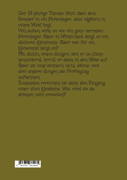 Der 13-jährige Thomas fährt über dem Sommer in ein Ferienlager, dass idyllisch in einem Wald liegt.Von außen wirkt es wie ein ganz normales Ferienlager. Aber in Wirklichkeit birgt es ein düsteres Geheimnis. Aber was für ein Geheimnis birgt es?Mit Justin, einem Jungen, den er im Camp kennenlernt, bricht er dann in den Wald auf. Aber sie sind dennoch nicht alleine, weil drei andere Jungen die Verfolgung aufnehmen.Zusammen erreichen sie dann den Eingang einer alten Goldmine. Was wird sie da drinnen wohl erwarten?