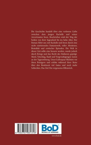 Die Geschichte handelt über eine verlorene Liebe zwischen dem jungen Rachelle und seiner Anvertrauten Ireen. Beschrieben wird der Weg der beiden von ihrer Jugendzeit bis ins hohe Alter. Der Roman führt uns mit Rachelle und Ireen durch eine nicht existierenden Fantasiewelt, voller Abenteuer, Brutalität und erotischer Episoden. Die Welt in dieser Zeit sollte eine bessere werden, wurde jedoch durch Kriege und das Recht des Stärkeren geprägt. Mord, Totschlag, Raub und Vergewaltigungen waren an der Tagesordnung. Unser Liebespaar flüchtete vor ihren Peinigern und erlebte während ihrer Reise über den Kontinent viel Gutes und noch mehr Schlechtes. Das Ziel: Ein vergessenes Elfenreich.