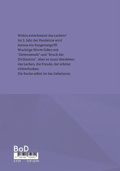 Wohin entschwand das Lachen?Im 3. Jahr der Pandemie wird daraus ein Zangenangriff. Wuchtige Worte fallen wie "Zeitenwende" und "Bruch der Zivilisation". Aber es muss überleben:das Lachen, die Freude, der schöne Götterfunken. Die Suche selbst ist das Geheimnis.