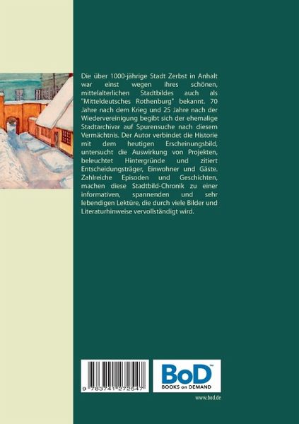 Die über 1000-jährige Stadt Zerbst in Anhalt war einst wegen ihres schönen, mittelalterlichen Stadtbildes auch als "Mitteldeutsches Rothenburg" bekannt. 70 Jahre nach dem Krieg und 25 Jahre nach der Wiedervereinigung begibt sich der ehemalige Stadtarchivar auf Spurensuche nach diesem Vermächtnis. Der Autor verbindet die Historie mit dem heutigen Erscheinungsbild, untersucht die Auswirkung von Projekten, beleuchtet Hintergründe und zitiert Entscheidungsträger, Einwohner und Gäste. Zahlreiche Episoden und Geschichten, machen diese Stadtbild-Chronik zu einer informativen, spannenden und sehr lebendigen Lektüre, die durch viele Bilder und Literaturhinweise vervollständigt wird.