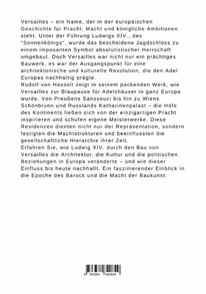 Im 17. Jahrhundert setzte Ludwig XIV. mit dem Schloss Versailles ein unvergängliches Zeichen absolutistischer Macht und kultureller Exzellenz. In seinem Werk "Das Vermächtnis von Versailles: Die Transformation des Adels durch Ludwigs XIV. Versailles" führt Rudolf von Hasselt die Leser tief in die faszinierende Welt dieses prachtvollen Palastes ein.Von der visionären Planung über die beeindruckenden Bauphasen bis hin zur meisterhaften Gestaltung der weitläufigen Gärten von André Le Nôtre - das Buch beleuchtet, wie Versailles nicht nur ein architektonisches Meisterwerk wurde, sondern auch ein…mehr