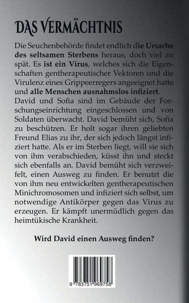 Der Ausnahmezustand wurde verhängt. David und Sofia, zusammen mit noch anderen Mitarbeitern, sind im Gebäude der Forschungseinrichtung eingeschlossen und von Soldaten überwacht. David bemüht sich, Sofia zu beschützen und seine Gefühle ihr gegenüber zu verdrängen. Doch wer kann schon sein Herz befehligen? Er versucht sogar ihren geliebten Freund Elias, der sich in einem anderen Gebäude auf dem Forschungsgelände befindet, zu ihr zu holen. Doch Elias hatte sich bereits infiziert und Sofia gibt David die Schuld daran. Als ihr Freund im Sterben liegt, will sie sich von ihm verabschieden, küsst ihn und steckt sich ebenfalls an. David bemüht sich verzweifelt, sie zu retten. Er benutzt die neuen gentherapeutischen Minichromosomen und infiziert sich selbst, um die notwendigen Antikörper gegen das Virus zu erzeugen. David setzt sich mit der heimtückischen Krankheit auseinander und kämpft unermüdlich, um Sofia zu retten. Wird es ihm gelingen? Glück und Leid, Freude und Verzweiflung begleiten ihn dabei Hand in Hand. Wird David am Ende die Krankheit besiegen können? Wir er eine Lösung finden?