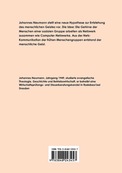 Johannes Neumann stellt eine neue Hypothese zur Entstehung des menschlichen Geistes vor. Die Idee: Die Gehirne der Menschen einer sozialen Gruppe arbeiten als Netzwerk zusammen wie Computer-Netzwerke. Aus der Netz-Kommunikation der frühen Menschengruppen entstand der menschliche Geist.