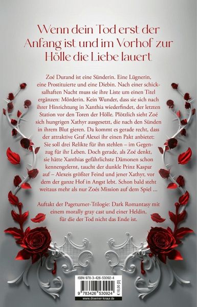Zoé Durand ist eine Sünderin. Eine Lügnerin, eine Prostituierte und eine berüchtigte Diebin. Nach einer schicksalhaften Nacht muss sie sich einen weiteren Titel auf ihre Liste schreiben: Mörderin. Kein Wunder, dass sie sich nach ihrer Hinrichtung in Xanthia wiederfindet, der letzten Station vor den Toren der Hölle. Plötzlich sieht Zoé sich hungrigen Xathyr ausgesetzt, die nach den Sünden in ihrem Blut gieren. Da kommt es gerade recht, dass der attraktive Xathyr-Graf Alexei ihr einen Pakt anbietet: Sie soll drei Relikte für ihn stehlen - im Gegenzug für ihre Freiheit. Doch gerade, als Zoé denkt, sie hätte Xanthias gefährlichste Dämonen schon kennengelernt, taucht der dunkle Prinz Kaspar auf - Alexeis größter Feind und jener Xathyr, vor dem der ganze Hof in Angst lebt. Zoé ist von Kaspars Schatten gleichermaßen abgestoßen und fasziniert. Noch ahnt sie nicht, dass sie weder Kas noch Alexei vertrauen sollte ...