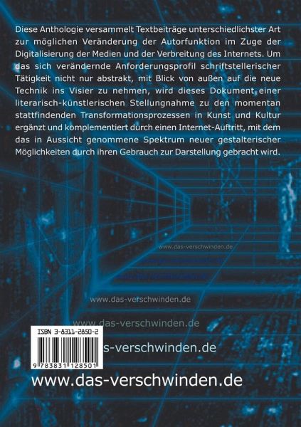 Die Anthologie ¿Das Verschwinden des Autors¿ setzt sich mit den Veränderungen der Literaturproduktion auseinander, die schlagwortartig mit dem Ausdruck von der Post-Gutenberg-Ära bezeichnet werden können. Die darin versammelten Texte fügen sich zu einem bunten Mosaik eines Diskurses über die Zukunft der Autorinnen und der Autorschaft. Auf literarisch vielfältige Weise: lyrisch, poetisch und essayistisch nehmen die beteiligten Autoren Stellung zu der These, dass Literatur künftig ohne Autoren auskommen und anstelle des unveränderlichen, von einer einzelnen Person autorisierten Werks ein never-ending-work-in-progress der unbekannten Vielen treten wird.
