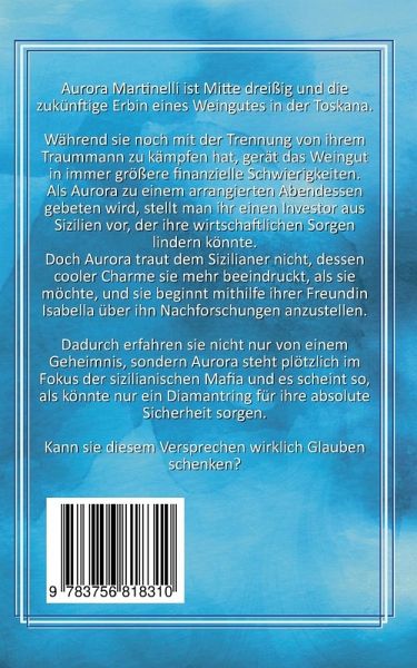 Aurora Martinelli ist Mitte dreißig und die zukünftige Erbin eines Weingutes in der Toskana. Während sie noch mit der Trennung von ihrem Traummann zu kämpfen hat, gerät das Weingut in immer größere finanzielle Schwierigkeiten. Als sie zu einem arrangierten Abendessen gebeten wird, stellt man ihr einen Investor aus Sizilien vor, der ihre wirtschaftlichen Sorgen lindern könnte. Doch Aurora traut dem Sizilianer nicht, dessen cooler Charme sie mehr beeindruckt, als sie möchte, und sie beginnt mithilfe ihrer Freundin Isabella über ihn Nachforschungen anzustellen. Dadurch erfahren sie nicht nur von einem Geheimnis, sondern Aurora steht plötzlich im Fokus der sizilianischen Mafia und es scheint so, als könnte nur ein Diamantring für ihre absolute Sicherheit sorgen.Kann sie diesem Versprechen wirklich Glauben schenken?