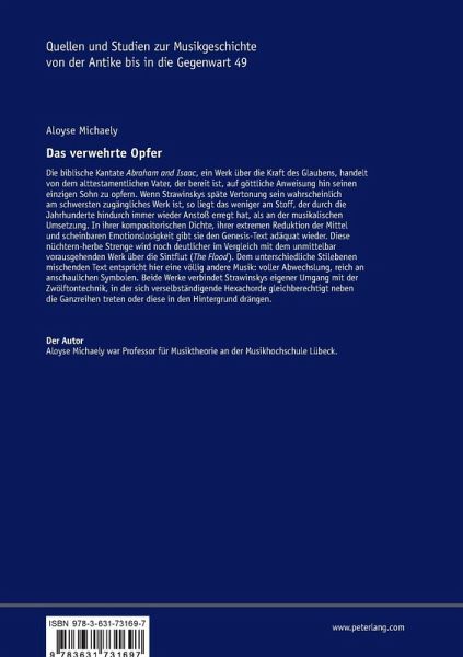 Die biblische Kantate «Abraham and Isaac», ein Werk über die Kraft des Glaubens, handelt von dem alttestamentlichen Vater, der bereit ist, auf göttliche Anweisung hin seinen einzigen Sohn zu opfern. Wenn Strawinskys späte Vertonung sein wahrscheinlich am schwersten zugängliches Werk ist, so liegt das weniger am Stoff, der durch die Jahrhunderte hindurch immer wieder Anstoß erregt hat, als an der musikalischen Umsetzung. In ihrer kompositorischen Dichte, ihrer extremen Reduktion der Mittel und scheinbaren Emotionslosigkeit gibt sie den Genesis-Text adäquat wieder. Diese nüchtern-herbe Strenge wird noch deutlicher im Vergleich mit dem unmittelbar vorausgehenden Werk über die Sintflut («The Flood»). Dem unterschiedliche Stilebenen mischenden Text entspricht hier eine völlig andere Musik: voller Abwechslung, reich an anschaulichen Symbolen. Beide Werke verbindet Strawinskys eigener Umgang mit der Zwölftontechnik, in der sich verselbständigende Hexachorde gleichberechtigt neben die Ganzreihen treten oder diese in den Hintergrund drängen.