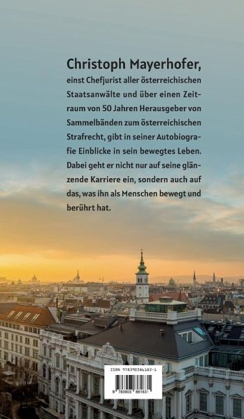 Christoph Mayerhofer, einst Chefjurist aller österreichischen Staatsanwälte und über einen Zeitraum von 50 Jahren Herausgeber von Sammelbänden zum österreichischen Strafrecht, gibt in seiner Autobiografie Einblicke in sein bewegtes Leben. Dabei geht er nicht nur auf seine glänzende Karriere ein, sondern auch auf das, was ihn als Menschen bewegt und berührt hat.