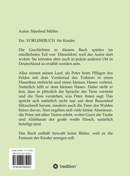 Peter lebt zusammen mit seinen Eltern auf einem Bauernhof. Er ist sehr tierlieb und hilft seinem Vater, wo er nur kann. Eines Tages bricht er beim Pflügen eines Feldes mit dem Vorderrad des Traktors in einen Hasenbau ein und verletzt einen kleinen Hasen. Er hilft dem Häschen natürlich und merkt dabei, dass er plötzlich die Sprache der Tiere versteht und die Tiere verstehen ihn. Das wiederum spricht sich sehr schnell nicht nur auf dem Bauernhof herum, sondern auch die Tiere des Waldes erfahren durch Gurri die Taube davon. Es folgen Abenteuer, die Peter mit allen Tieren erlebt und es kommt tatsächlich dazu, dass sich Hof- und Waldtiere auf dem Bauernhof treffen und sich kennenlernen. Die Geschichten sind so aufgebaut, dass den Kindern praktisch über die Tiere auch Umweltschutz, Verhaltensweisen und Streitschlichtung näher gebracht und diese somit für gewisse Dinge sensibilisiert werden, ohne dabei direkt belehrend zu wirken.