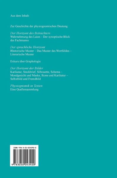 Seit Anfang der achtziger Jahre lässt sich eine Renaissance physiognomischer Fragestellungen beobachten: in Kunst-, Literatur-, Sozial- und Neurowissenschaften. Nicht wenige Autoren möchten dabei an die prekären Übergänge der Physiognomik in spekulative und rassistische Theoreme warnend erinnern. Besonders die deutschen Autoren der Weimarer Zeit - Ludwig Klages, Rudolf Kassner, Max Picard, Oswald Spengler und viele andere - haben beim gebildeten Publikum damals ein physiognomisches Vorbewusstsein kultiviert, das geradezu als Weiche zwischen Biologie und Phänomenologie, Religion und "gesundem Volksempfinden" fungiert hat. Vor einer ähnlichen Konstellation sehen wir uns auch heute wieder: Emmanuel Lévinas philosophiert über das "Antlitz" als moralische, andere Autoren über das Gesicht als ästhetische oder biologische Größe. Und dies vor dem Hintergrund der gentschnischen "hard science", den aktuellen physiognomischen Fragen nach dem "Fremden" sowie der überwältigenden Präsenz des Gesichts in den Medien. Um so dringlicher scheint es, den physiognomischen Diskurs kritisch zu analysieren. Was kann er leisten und was nicht? Das vorliegende Buch bietet keine traditionelle Vorurteilsforschung. Es skizziert das Verhältnis der kulturellen Raster, die diese Urteile legitimieren, zu den Wahrnehmungsakten, die sie inspirieren. Ein Bild- sowie ein umfangreicher Textquellenteil am Schluss des Bandes dokumentieren dieses Verfahren.