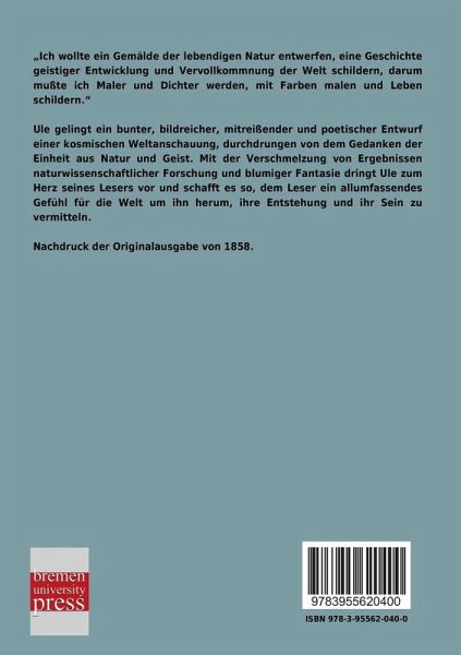 Ule gelingt ein bunter, bildreicher, mitreißender und poetischer Entwurf einer kosmischen Weltanschauung, durchdrungen von dem Gedanken der Einheit aus Natur und Geist. Mit der Verschmelzung von Ergebnissen naturwissenschaftlicher Forschung und blumiger Fantasie dringt Ule zum Herz seines Lesers vor und schafft es so, dem Leser ein allumfassendes Gefühl für die Welt um ihn herum, ihre Entstehung und ihr Sein zu vermitteln.