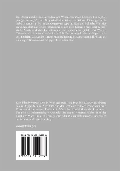 Der Autor: Kurt Klaudy wurde 1905 in Wien geboren. Von 1924 bis 1928/29 absolvierte er das Doppelstudium Architektur an der Technischen Hochschule Wien und Kunstgeschichte an der Universität Wien. Im Anschluß an die Promotion, Tätigkeit als selbstständiger Architekt. Zu seinen Arbeiten zählen etwa der Flughafen Wien und die Generalplanung der Wiener Hafenanlage. Daneben ist er bis heute als Historiker tätig.
