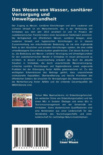 Der Zugang zu Wasser, sanitären Einrichtungen und einer sauberen und sicheren Umwelt ist ein Menschenrecht, das in der Verfassung von Simbabwe aus dem Jahr 2013 verankert ist und im Prozess der sozioökonomischen Transformation einen besonderen Stellenwert einnimmt. Die Verfügbarkeit von öffentlichem Wasser, sanitären Anlagen, einer sauberen Umwelt und hygienischen Einrichtungen ist in diesem Zusammenhang von entscheidender Bedeutung, da sie eine ergänzende Rolle zu den häuslichen und privaten Einrichtungen spielen, die eine solide umweltbezogene Gesundheitssituation gewährleisten. Ziel dieses Buches ist es, die Bedeutung von Wasser, sanitärer Versorgung und Umweltgesundheit für den sozioökonomischen Wandel in Simbabwe im neuen Jahrtausend zu ermitteln. In diesem Zusammenhang erläutert das Buch die aktuelle Situation in Simbabwe, die durch unzureichende Wasserversorgung, schlechte sanitäre Einrichtungen und Hygienedienste sowie ungesunde Praktiken bei der Entsorgung fester Abfällegekennzeichnet ist. Zu den wichtigsten Erkenntnissen des Beitrags gehört, dass unzureichende institutionelle Kapazitäten, Überbevölkerung und falsche Prioritäten des öffentlichen Sektors die Ursachen für Verstopfungen des Abwassersystems, die Nichterfassung fester Abfälle und die sinkende Gesamtqualität der WASH-Dienste sind.