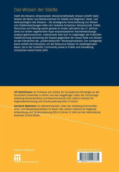Gerhard Mahnken ist stellvertretender Leiter der Abteilung Kommunikations- und Wissensdynamiken im Raum des Leibniz-Instituts für Regionalentwicklung und Strukturplanung (IRS) in Erkner. Er lehrt an der International Business School Berlin. Ulf Matthiesen ist Professor am Institut für Europäische Ethnologie an der Humboldt-Universität zu Berlin und war langjähriger Leiter der Forschungsabteilung Wissensmilieus und Raumstrukturen des Leibniz-Instituts für Regionalentwicklung und Strukturplanung (IRS) in Erkner.