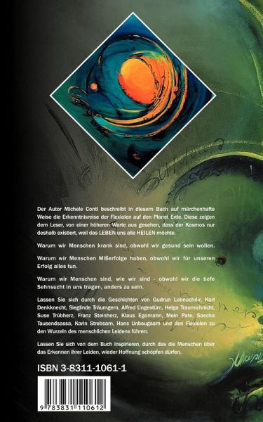 Der Autor Michele Conti, beschreibt in diesem Buch auf märchenhafte Weise, die Erkenntnisreise der Flexiolen auf den Planet Erde. Diese zeigen dem Leser, von einer höheren Warte aus gesehen, dass der Kosmos nur deshalb existiert, weil das LEBEN uns alle HEILEN möchte. Warum wir Menschen krank sind, obwohl wir gesund sein wollen. Warum wir Menschen Mißerfolge haben, obwohl wir für unseren Erfolg alles tun. Warum wir Menschen sind, wie wir sind - obwohl wir die tiefe Sehnsucht in uns tragen, anders zu sein. Lassen Sie sich durch die Geschichten von Gudrun Lebnachdir, Karl Denkknecht, Sieglinde Träumgern, Alfred Ungestüm, Helga Traumichnicht, Suse Trübherz, Franz Steinherz, Klaus Egomann, meinem Paten, Sascha Tausendsassa, Karin Strebsam, Hans Unbeugsam und den Flexiolen zu den Wurzeln des menschlichen Leidens führen. Lassen Sie sich von dem Buch inspirieren, durch das die Menschen über das Erkennen ihrer Leiden, wieder Hoffnung schöpfen dürfen.