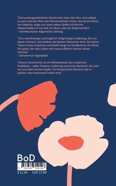 "Eine außergewöhnliche Geschichte über den Mut, sich selbst zu sein und den Wert der Gemeinschaft. Anton, der kleine Riese von Malchin, zeigt uns, dass wahre Größe nichts mit Körpermaßen zu tun hat. Ein Buch, das die Seele berührt." - Norddeutsche Allgemeine Zeitung "Eine warmherzige und zugleich tiefgründige Erzählung, die uns daran erinnert, wie kostbar die kleinen Momente sind. Der kleine "Riese Anton inspiriert und bleibt lange im Gedächtnis. Ein Muss für jeden, der das Leben mit einem offenen Herzen sehen möchte." - Schweriner Tagesblatt "Antons Geschichte ist ein Meisterwerk des modernen Erzählens - voller Charme, Hoffnung und einer Weisheit, die sich nur aus dem Herzen ergibt. Ein literarisches Kleinod, das in jedem Leser Resonanz finden wird." - Die Literaturstimme
