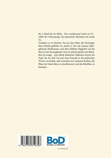 Im 2. Band der Oz-Reihe - Das wundersame Land von Oz - erlebt der Waisenjunge Tip spannende Abenteuer im Lande Oz.Nachdem Tip in höchster Not aus dem Haus der bösartigen Hexe Mombi geflohen ist, macht er sich mit seinem selbstgebauten Kürbismann und dem belebten Sägepferd auf die Reise in die Smaragdstadt. Dort ist jedoch gerade eine Rebellion im Gange - eine Horde diebischer Mädchen besetzt die Stadt. Im Nu sind Tip und seine Freunde in die politischen Wirren verwickelt, und versuchen mit vereinten Kräften, die Pläne der bösen Hexe zu durchkreuzen und die Rebellion zu beenden ...Empfohlenes Alter: 5 bis 10 Jahre. Große Schrift, auch für Leseanfänger geeignet.