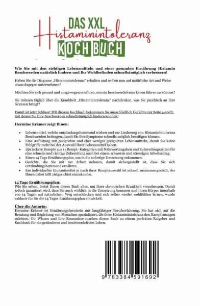 Entdecken Sie die heilende Kraft der richtigen Ernährung mit "Das XXL Histaminintoleranz Kochbuch" von Hermine Krämer. Dieses umfassende Werk bietet Ihnen 150 leckere und histaminarme Rezepte, die speziell darauf ausgerichtet sind, die Symptome einer Histaminintoleranz zu lindern und gleichzeitig eine entzündungshemmende, ausgewogene Ernährung zu fördern.Wenn Sie unter Beschwerden wie Kopfschmerzen, Hautreaktionen, Magen-Darm-Problemen oder anderen Symptomen einer Histaminintoleranz leiden, bietet dieses Buch eine praktische und effektive Lösung. Hermine Krämer, eine Expertin auf dem Gebiet der Ernährung bei Histaminintoleranz, vermittelt Ihnen fundiertes Wissen über lebensmittelbedingte Auslöser und zeigt, wie Sie durch gezielte Ernährungsumstellung eine signifikante Verbesserung Ihres Wohlbefindens erreichen können.Das Buch enthält eine sorgfältige Auswahl an histaminarmen Lebensmitteln und bietet klare Anweisungen, welche Nahrungsmittel zu meiden sind, um histaminbedingte Reaktionen zu verhindern. Die 150 Rezepte decken eine breite Palette von Kategorien ab und sind mit Nährwertangaben und Zubereitungszeiten versehen, sodass sie auch für einen anspruchsvollen und hektischen Alltag geeignet sind.Ein besonderes Highlight ist der 14-Tage-Ernährungsplan, der Ihnen den Einstieg erleichtert und einen klaren Weg zu einer histaminarmen Ernährung aufzeigt. Egal, ob Sie zu Hause oder bei der Arbeit sind, die Gerichte sind so konzipiert, dass sie leicht zuzubereiten und mitzunehmen sind, um eine konstante und entzündungshemmende Ernährung zu gewährleisten.Ein individuell abgestimmter Einkaufszettel erleichtert Ihnen das zielgerichtete Einkaufen und hilft, den Überblick über die benötigten Zutaten zu behalten.Mit "Das XXL Histaminintoleranz Kochbuch" erhalten Sie nicht nur ein Rezeptbuch, sondern einen ganzheitlichen Ratgeber, der Ihnen hilft, Ihre Histaminintoleranz natürlich zu behandeln und Ihr Leben innerhalb von 14 Tagen spürbar zu verbessern. Nehmen Sie IhreGesundheit in die Hand und beginnen Sie den Weg zu einem beschwerdefreien Leben.