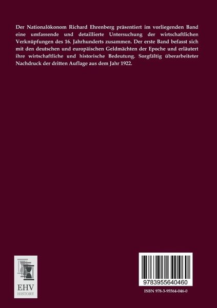 Der Nationalökonom Richard Ehrenberg präsentiert im vorliegenden Band eine umfassende und detaillierte Untersuchung der wirtschaftlichen Verknüpfungen des 16. Jahrhunderts zusammen. Der erste Band befasst sich mit den deutschen und europäischen Geldmächten der Epoche und erläutert ihre wirtschaftliche und historische Bedeutung. Sorgfältig überarbeiteter Nachdruck der dritten Auflage aus dem Jahr 1922.