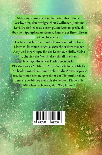 Malya steht komplett im Schatten ihrer älteren Geschwister, den erfolgreichen Zwillingen June und Levi. Da sie lieber zu einem guten Roman greift, als über den Sportplatz zu rennen, kann sie es ihren Eltern nie recht machen.Im Internat hofft sie, endlich aus dem Fokus ihrer Eltern zu kommen, doch ausgerechnet dort machen Amy und ihre Clique ihr das Leben zur Hölle. Malya sucht sich ein Ventil, das schnell in einem lebensgefährlichen Teufelskreis endet.Plötzlich ist es Mobberin Amy, die sich ihr anschließt. Die beiden rutschen immer tiefer in die Abwärtsspirale und kommen sich ausgerechnet am Tiefpunkt näher, denn sie verbindet mehr als sie denken. Finden die Mädchen rechtzeitig den Weg hinaus?