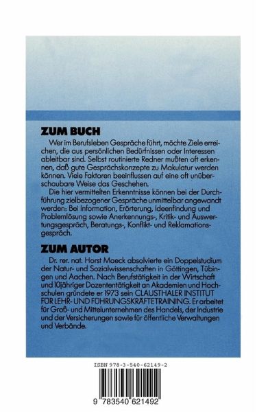 1 Gesprächspsychologische Einführung.- 1.1 Triebe, Bedürfnisse, Motivationskraft und Gesprächsführung.- 1.2 Motivationskräfte als Vektoren.- 1.3 Das Gespräch nach dem nachrichtentheoretischen Modell.- 1.4 Vor- und Nachteile von Einweg- und Zweiweg-Kommunikation.- 2 Das zielorientierte Gespräch als Wirkungssystem.- 2.1 Ziele.- 2.2 Zielgemäßer Aufbau.- 2.3 Kompetenzorientierte Gesprächsvarianten.- 2.4 Elementare Techniken der Verständigung.- 2.5. Gesprächsstile.- 2.6 Die Personlichkeitsstruktur der Gesprächsteilnehmer.- 2.7 Die Gesprächsteilnehmer als Gruppe.- 2.8 Die Rahmenbedingungen.- 3 Behandlung von Störungen.- 3.1 Störungsanalysen.- 3.2 Störungen behandeln.- 4 Motivationspsychologie des Gesprächs.- 4.1 Signale setzen.- 4.2 Erwünschtes Verhalten positiv verstärken.- 4.3 Unerwünschtes Verhalten ahnden.- 4.4 Unerwünschtes Verhalten nicht beachten.- 4.5 Ängstliche mit Nachdruck ermuntern.- 4.6 Als Vorbild wirken.- 4.7 Nicht unnötig frustrieren.- 4.8 Überzeugen statt überreden.- 4.9 Das Motivationsgespräch.- 5 Checklisten zur Gesprächsführung.- 5.1 Checkliste zur allgemeinen Vorbereitung von Gesprächen.- 5.2 Checkliste zur allgemeinen Durchführung von Gesprächen.- 5.3 Checkliste zur allgemeinen Nachbereitung von Gesprächen.- 5.4 Checkliste zum Aufbau von Gesprächen.- 5.5 Checkliste zur formalen Kompetenz des Gesprächsleiters.- 6 Analyse des Gesprächsverhaltens.- 6.1 Motivations- und Einstellungsanalysen.- 6.2 Qualitative Analysen.- 6.3 Quantitative und situative Analysen.- 7 Verhaltenstraining des Gesprächs.- 7.1 Verstärken erwünschten Verhaltens.- 7.2 Abbau unerwünschten Verhaltens.- 7.3 Aufbau fehlenden Verhaltens.- 8 Literatur.