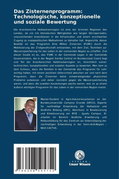 Die brasilianische Halbwüstenregion ist eine der ärmsten Regionen des Landes, da sie mit klimatischen Widrigkeiten wie langen Dürreperioden, unzureichenden Investitionen in die Infrastruktur und einem erschwerten Zugang zu sozialpolitischen Maßnahmen zu kämpfen hat. Angesichts dieser Realität ist das Programm Eine Million Zisternen (P1MC) durch die Mobilisierung der Zivilgesellschaft entstanden, mit dem Ziel, Techniken zur Wasserspeicherung für das Leben in der semiariden Region zu schaffen. Ziel dieser Studie ist es, das P1MC in der Gemeinde Lages in der Gemeinde Quixeramobim, die in der Region Sertão Central im Bundesstaat Ceará liegt und Teil der brasilianischen Halbtrockenregion ist, hinsichtlich seiner technischen, konzeptionellen und sozialen Aspekte zu bewerten. Man kam zu dem Schluss, dass die Familien in der Gemeinde das Programm für sehr wichtig halten, mit einem positiven Unterschied zwischen vor und nach dem Programm, dass die Zisternen keine schwerwiegenden physischen Probleme aufwiesen und daher resistent gegen die Wasserspeicherung waren, und dass die sozialen Auswirkungen positiv waren, was es zu einem äußerst wichtigen Programm für das Leben in der semiariden Region macht.