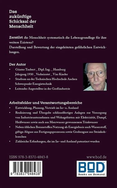 Der Autor ¿ Günter Taubert _ Dipl. Ing. _ Hamburg. Jahrgang 1930 _ Verheiratet _ Vier Kinder ¿ Studium an der Technischen Hochschule Aachen Schwerpunkt Energietechnik ¿ Leitender Angestellter in der Großindustrie Arbeitsfelder und Verantwortungsbereiche ¿ Entwicklung, Planung, Vertrieb im In- u. Ausland ¿ Realisierung und Übergabe schlüsselfertiger Anlagen zur Versorgung von Industrieunternehmen und Wohngebieten mit Elektrizität, Dampf, Heißwasser sowie auch aus Meerwasser gewonnenem Trinkwasser ¿ Neben üblichen Brennstoffen Nutzung als Energiebasis auch Wasserstoff, giftige Abgase aus Fertigungsprozessen sowie Grubengase aus Steinkohlezechen ¿ Zahlreiche Erfindungen, die im In- und Ausland patentiert wurden