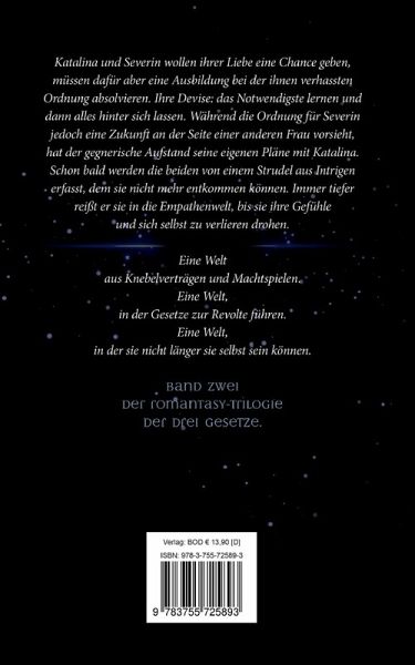 der Ordnung, die Severin drängt, eine Position als Zirkelführer einzunehmen. Dafür müsste er sich…mehrUm irgendwann zusammen sein zu können, beginnen Katalina und Severin ihre Ausbildung bei Adele, danach wollen sie ihr gemeinsames Leben weit fort von der Welt der Empathen und der Beaufsichtigung durch die Ordnung verbringen. Doch je mehr sie lernen, umso tiefer verstricken sie sich in den Fängen der Ordnung, die Severin drängt, eine Position als Zirkelführer einzunehmen. Dafür müsste er sich allerdings von Katalina trennen - um das zu verhindern sucht Kata Kontakt zum Aufstand und schon bald wissen die Liebenden nicht mehr, wem sie überhaupt noch trauen können.